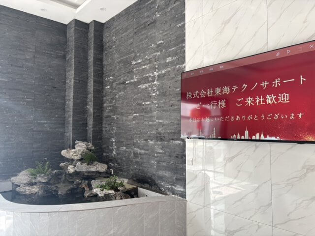 (↑オフィス入口の大型モニターで温かく迎えていただきました🐼)